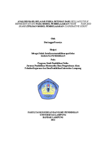 0813022024, Dio AnggerPrasetya (2012) ANALISIS HASIL BELAJAR FISIKA DITINJAU DARI SKILL MULTIPLE REPRESENTATIONS PADA MODEL PEMBELAJARAN THINK PAIR AND SHARE (TPS) DAN MODEL PEMBELAJARAN COOPERATIVE SCRIP. Digital Library.