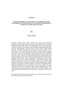 Indonesia memiliki aneka ragam tumbuhan dan hewan yang dilindungi keberadaannya agar tidak punah. Salah satunya adalah gajah. Salah satu cara untuk melindungi gajah adalah dengan menempatkannya pada area penangkaran. Walaupun demikian, hal ini tidak menutup kemungkinan bahwa gajah dapat keluar dari area penangkarannya. Wireless Sensor Network (WSN) adalah sebuah teknologi yang dapat digunakan untuk memantau pergerakan gajah di area penangkaran. WSN adalah teknologi komunikasi tanpa kabel antara perangkat sensor (sensor node) yang menggunakan daya pancar rendah. Terdapat perangkat pengumpul (sink node) yang berfungsi mengumpulkan informasi yang diperoleh dari sensor node. Awalnya sink node bersifat diam (static) sehingga pada kasus transmisi multi hop sensor node yang jaraknya paling dekat dengan sink node akan melakukan lebih banyak aktifitas (komunikasi), sehingga akan lebih banyak kehabisan energi. Hal ini dapat mempersingkat umur (lifetime) jaringan. Oleh karena itu, digunakan sink node yang bergerak (mobile) agar konsumsi energi menjadi lebih merata dan lifetime jaringan menjadi lebih panjang. Metode penelitian yang digunakan adalah pemodelan dan simulasi. Pemodelan dibedakan berdasarkan jumlah sink node yang digunakan yaitu tunggal (single) dan jamak (multiple). Hasil simulasi menunjukkan bahwa dengan menggunakan sink node yang bergerak maka konsumsi energi lebih merata dan lifetime jaringan yang diperoleh lebih panjang dibandingkan dengan hanya menggunakan sink node yang diam. Kata kunci: Wireless Sensor Network (WSN), sensor node, sink node, static sink node, lifetime, energi, dan mobile sink node.