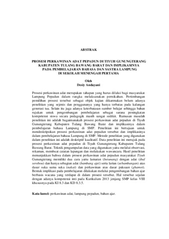Desiy Andayani, 152304008 (2018) PROSESI PERKAWINAN ADAT PEPADUN DI TIYUH GUNUNGTERANG KABUPATEN TULANG BAWANG BARAT DAN IMPLIKASINYA PADA PEMBELAJARAN BAHASA DAN SASTRA LAMPUNG DI SEKOLAH MENENGAH PERTAMA. Masters thesis, PROGRAM PASCASARJANA MAGISTER PENDIDIKAN BAHASA DAN SASTRA DAERAH.