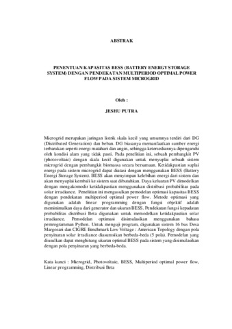 JESHU PUTRA, 1515031054 (2019) PENENTUAN KAPASITAS BESS (BATTERY ENERGY STORAGE SYSTEM) DENGAN PENDEKATAN MULTIPERIOD OPTIMAL POWER FLOW PADA SISTEM MICROGRID. Fakultas Teknik, UNIVERSITAS LAMPUNG.