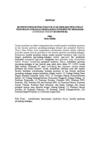 REISA MALIDA, 2022011045 (2022) RESTRUKTURISASI PERATURAN DI LUAR HIERARKI PERATURAN PERUNDANG-UNDANGAN BERDASARKAN PERSPEKTIF HIERARKHI STUFENBAU THEORY DI INDONESIA. Masters thesis, UNIVERSITAS LAMPUNG.