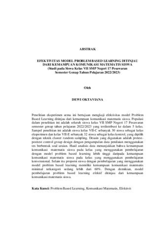 Dewi, Oktaviana (2023) EFEKTIVITAS MODEL PROBLEM BASED LEARNING DITINJAU DARI KEMAMPUAN KOMUNIKASI MATEMATIS SISWA. FAKULTAS KEGURUAN DAN ILMU PENDIDIKAN, UNIVERSITAS LAMPUNG.
