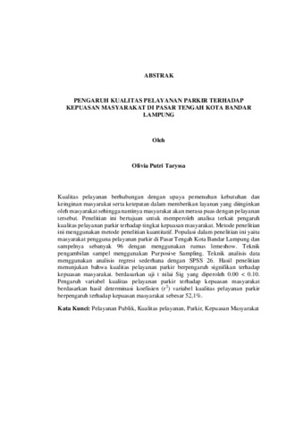 Kualitas pelayanan berhubungan dengan upaya pemenuhan kebutuhan dan keinginan masyarakat serta ketepatan dalam memberikan layanan yang diinginkan oleh masyarakat sehingga nantinya masyarakat akan merasa puas dengan pelayanan tersebut. Penelitian ini bertujuan untuk memperoleh analisa terkait pengaruh kualitas pelayanan parkir terhadap tingkat kepuasan masyarakat. Metode penelitian ini menggunakan metode penelitian kuantitatif. Populasi dalam penelitian ini yaitu masyarakat pengguna pelayanan parkir di Pasar Tengah Kota Bandar Lampung dan sampelnya sebanyak 96 dengan menggunakan rumus lemeshow. Teknik pengambilan sampel menggunakan Purposive Sampling. Teknik analisis data menggunakan analisis regresi sederhana dengan SPSS 26. Hasil penelitian menunjukan bahwa kualitas pelayanan parkir berpengaruh signifikan terhadap kepuasan masyarakat. berdasarkan uji t nilai Sig yang diperoleh 0.00 < 0.10. Pengaruh variabel kualitas pelayanan parkir terhadap kepuasan masyarakat berdasarkan hasil determinasi koefisien (r2) variabel kualitas pelayanan parkir berpengaruh terhadap kepuasan masyarakat sebesar 52,1%. Kata Kunci: Pelayanan Publik, Kualitas pelayanan, Parkir, Kepuasan Masyarakat Service quality is related to efforts to fulfill the needs and desires of the community as well as accuracy in providing the services desired by the community so that later the community will feel satisfied with the service. This research aims to obtain an analysis regarding the influence of parking service quality on the level of community satisfaction. This research method uses quantitative research methods. The population in this research is people who use parking services at Pasar Tengah, Bandar Lampung City and the sample is 96 using the lemeshow formula. The sampling technique usesPurposive Sampling. The data analysis technique uses simple regression analysis with SPSS 26. The research results show that the quality of parking services has a significant effect on community satisfaction. based on the t test, the Sig value obtained was 0.00 < 0.10. The influence of parking service quality variables on community satisfaction based on the results of the coefficient determination (r2) the parking service quality variable influences community satisfaction by 52.1%. Keywords: Public Service, Service Quality, Parking, Community Satisfaction