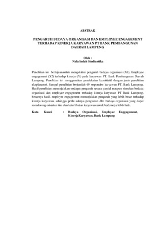 Nafa, Indah Sindiantika (2024) PENGARUH BUDAYA ORGANISASI DAN EMPLOYEE ENGAGEMENT TERHADAP KINERJA KARYAWAN PT BANK PEMBANGUNAN DAERAH LAMPUNG. FAKULTAS ILMU SOSIAL DAN POLITIK , UNIVERSITAS LAMPUNG.