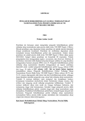 Wulan , Ambar Asrofi (2024) PENGARUH BERKEBHINEKAAN GLOBAL TERHADAP SIKAP NASIONALISME PADA PESERTA DIDIK KELAS VII SMP NEGERI 2 METRO. FAKULTAS KEGURUAN DAN ILMU PENDIDIKAN, UNIVERSITAS LAMPUNG.