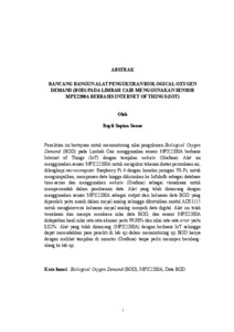 Penelitian ini bertujuan untuk memonitoring nilai pengukuran Biological Oxygen Demand (BOD) pada Limbah Cair menggunakan sensor MPX2200A berbasis Internet of Things (IoT) dengan tampilan website (Grafana). Alat ini menggunakan sensor MPX22200A untuk mengukur tekanan diatas permukaan air, dilengkapi microcomputer Raspberry Pi 4 dengan koneksi jaringan Wi-Fi, untuk mengumpulkan, memproses data hingga dikirimkan ke Infulxdb sebagai database time-series dan menggunakan website (Grafana) sebagai visualisasi untuk mempermudah dalam pembacaan data. Alat yang telah dirancang dengan menggunakan sensor MPX2200A sebagai output dari keluaran data BOD yang diperoleh yaitu masih dalam sinyal analog sehingga dibutuhkan modul ADS1115 untuk mengkonversi keluaran sinyal analog menjadi data digital. Alat ini telah terealisasi dan mampu membaca nilai data BOD, dan sensor MPX2200A didapatkan hasil nilai rata-rata akurasi yaitu 99,98% dan nilai rata-rata error yaitu 0,02%. Alat yang telah dirancang (MPX2200A) dengan berbasis IoT sehingga dapat memudahkan para peneliti di lab uji dalam memonitoring uji BOD hanya dengan melihat tampilan di monitor (Grafana) tanpa perlu meninjau berulang-ulang ke lab uji. Kata kunci : Biological Oxygen Demand (BOD), MPX2200A, Data BOD abstract This research aims to monitor the measurement of Biological Oxygen Demand (BOD) in liquid waste using the MPX2200A sensor based on the Internet of Things (IoT) with a website display (Grafana). The device uses the MPX2200A sensor to measure the pressure above the water surface, and is equipped with a Raspberry Pi 4 microcomputer with a Wi-Fi network connection to collect, process data, and send it to InfluxDB as a time-series database. The website (Grafana) is used for visualization to simplify data interpretation. The device is designed with the MPX2200A sensor, which outputs analog BOD data. Therefore, the ADS1115 module is required to convert the analog signal into digital data. The device has been successfully implemented and is able to read BOD data values, with the MPX2200A sensor providing an average accuracy of 99.98% and an average error value of 0.02%. The IoT-based device makes it easier for researchers in testing laboratories to monitor BOD tests by simply viewing the display on a monitor (Grafana) without the need for repeated visits to the lab. Keywords : Biological Oxygen Demand (BOD), MPX2200A, BOD data