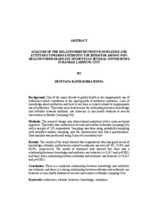 DESTYANA , RATIH RISMA WIDYA (2025) ANALISIS HUBUNGAN PENGETAHUAN DAN SIKAP TERHADAP PERILAKU PENGGUNAAN ANTIBIOTIK PADA MAHASISWA STRATA SATU NON KESEHATAN DI BEBERAPA PERGURUAN TINGGI DI KOTA BANDAR LAMPUNG. FAKULTAS KEDOKTERAN, UNIVERSITAS LAMPUNG.