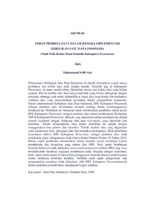 Pelaksanaan Kebijakan Satu Data Indonesia di daerah merupakan wujud upaya perbaikan tata kelola data pada tingkat daerah. Terlebih lagi di Kabupaten Pesawaran, di mana masih sering ditemukan proses tata kelola data yang belum optimal. Hal ini terlihat dari data-data pemerintah yang belum dilengkapi dengan metadata sehingga sulit untuk diidentifikasi, basis data yang lemah dan rendahnya validitas data yang menyebabkan kesalahan dalam pengambilan keputusan. Dalam implementasi Kebijakan Satu Data Indonesia, BPS Kabupaten Pesawaran sebagai pembina data memainkan peranan penting dalam terselenggaranya kebijakan ini. Penelitian ini bertujuan untuk memberikan gambaran terkait peran BPS Kabupaten Pesawaran sebagai pembina data dalam pelaksanaan Kebijakan SDI di Kabupaten Pesawaran. Metode yang digunakan dalam penelitian ini adalah metode kualitatif dengan didukung oleh data wawancara yang diperoleh dari informan. Teknik pengumpulan data dalam penelitian ini adalah dengan menggunakan data primer dan sekunder. Teknik analisis data yang digunakan yaitu kondensasi data, penyajian data dan penarikan kesimpulan. Hasil penelitian menumkan bahwa BPS Kabupaten Pesawaran sebagai pembina data telah melakukan tugas sebagaimana telah tertera dalam Perpres Nomor 39 Tahun 2019. Dalam aspek pemberian rekomendasi belum berjalan secara maskimal karena pemahaman dan kesadaran yang minim dari OPD. Pada aspek Pembinaan Statistik Sektoral sudah dilakukan secara rutin namun perwakilan OPD yang terus berubah-ubah membuat kegiatan pembinaan tidak berjalan dengan maksimal. Pada aspek pelaksanaan Evaluasi Penyelenggaraan Statistik Sktoral telah berjalan meski menemui beberapa kendala. Terakhir pada aspek pengecekan dan pengumpulan metadata telah dilakukan oleh BPS Kabupaten Pesawaranmeski dalam praktiknya masih harus menghandel tugas walidata. Kata kunci : Satu Data Indonesia, Pembina Data, OPD Implementation of Indonesia's One Data Policy in the regions is a form of effort to improve data governance at the regional level. Moreover, in Pesawaran Regency, where data management processes are often found to be not yet optimal. This can be seen from government data that is not yet equipped with metadata so it is difficult to identify, weak databases and low data validity which causes errors in decision making. In implementing the One Data Indonesia Policy, BPS Pesawaran Regency as data supervisor plays an important role in the implementation of this policy. This research aims to provide an overview of the role of BPS Pesawaran Regency as a data supervisor in implementing the SDI Policy in Pesawaran Regency. The method used in this research is a qualitative method supported by interview data obtained from informants. The data collection technique in this research is to use primary and secondary data. The data analysis techniques used are data condensation, data presentation and conclusion drawing. The results of the research indicate that BPS Pesawaran Regency as the data supervisor has carried out the tasks as stated in Presidential Decree Number 39 of 2019. In the aspect of providing recommendations, it has not run optimally due to minimal understanding and awareness from the OPD. In the aspect of Sectoral Statistics Development, it has been carried out routinely, however, the OPD representation continues to change, meaning that the development activities do not run optimally. In the implementation aspect, the Evaluation of the Implementation of Sectoral Statistics has been running despite encountering several obstacles. Finally, the aspect of checking and collecting metadata has been carried out by BPS Pesawaran Regency, although in practice it still has to handle the duties of the data guardian. Keywords : Satu Data Indonesia, Data Supervisor, OPD