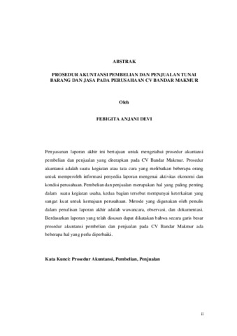 Penyusunan laporan akhir ini bertujuan untuk mengetahui prosedur akuntansi pembelian dan penjualan yang diterapkan pada CV Bandar Makmur. Prosedur akuntansi adalah suatu kegiatan atau tata cara yang melibatkan beberapa orang untuk memperoleh informasi penyedia laporan mengenai aktivitas ekonomi dan kondisi perusahaan. Pembelian dan penjualan merupakan hal yang paling penting dalam suatu kegiatan usaha, kedua bagian tersebut mempunyai keterkaitan yang sangat kuat untuk kemajuan perusahaan. Metode yang digunakan oleh penulis dalam penulisan laporan akhir adalah wawancara, observasi, dan dokumentasi. Berdasarkan laporan yang telah disusun dapat dikatakan bahwa secara garis besar prosedur akuntansi pembelian dan penjualan pada CV Bandar Makmur ada beberapa hal yang perlu diperbaiki. Kata Kunci: Prosedur Akuntansi, Pembelian, Penjualan