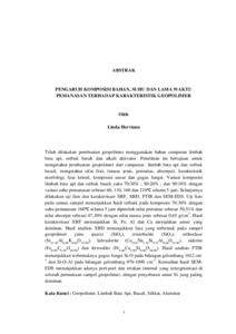 Linda, Herviana (2024) PENGARUH KOMPOSISI BAHAN, SUHU DAN LAMA WAKTU PEMANASAN TERHADAP KARAKTERISTIK GEOPOLIMER. FAKULTAS MATEMATIKA DAN ILMU PENGETAHUAN ALAM, UNIVERSITAS LAMPUNG.