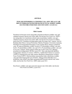 Rizki, Ananda (2024) PENGARUH PEMBERIAN ACIDIFIER CUKA APEL MELALUI AIR MINUM TERHADAP KONSUMSI RANSUM TOTAL, BOBOT AKHIR, DAN INCOME OVER FEED AND COST (IOFC) AYAM ULU. FAKULTAS PERTANIAN, UNIVERSITAS LAMPUNG.