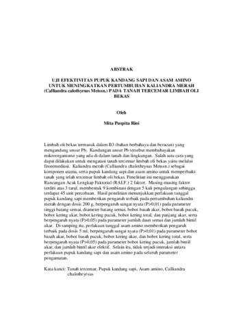 Mita Puspita, Rini (2024) UJI EFEKTIVITAS PUPUK KANDANG SAPI DAN ASAM AMINO UNTUK MENINGKATKAN PERTUMBUHAN KALIANDRA MERAH (Calliandra calothyrsus Meissn.) PADA TANAH TERCEMAR LIMBAH OLI BEKAS. FAKULTAS PERTANIAN, UNIVERSITAS LAMPUNG.