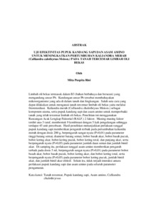 Limbah oli bekas termasuk dalam B3 (bahan berbahaya dan beracun) yang mengandung unsur Pb. Kandungan unsur Pb tersebut membahayakan mikroorganisme yang ada di dalam tanah dan lingkungan. Salah satu cara yang dapat dilakukan untuk mengatasi tanah tercemar limbah oli bekas yaitu melalui fitoremediasi. Kaliandra merah (Calliandra chalothrysus Meissn.) sebagai komponen utama, serta pupuk kandang sapi dan asam amino untuk memperbaiki tanah yang telah tercemar limbah oli bekas. Penelitian ini menggunakan Rancangan Acak Lengkap Faktorial (RALF.) 2 faktor. Masing-masing faktor terdiri atas 3 taraf, membentuk 9 kombinasi dengan 5 kali pengulangan sehingga terdapat 45 unit percobaan. Hasil penelitian menunjukkan perlakuan tunggal pupuk kandang sapi memberikan pengaruh terbaik pada pertumbuhan kaliandra merah dengan dosis 200 g, berpengaruh sangat nyata (P>0,01) pada parameter tinggi batang semai, diameter batang semai, bobot basah akar, bobot basah pucuk, bobot kering akar, bobot kering pucuk, bobot kering total, dan panjang akar, serta berpengaruh nyata (P>0,05) pada parameter jumlah daun semai dan jumlah bintil akar. Di samping itu, perlakuan tunggal asam amino memberikan pengaruh terbaik pada dosis 5 ml, berpengaruh sangat nyata (P>0,01) pada parameter bobot basah akar, bobot basah pucuk, bobot kering akar, dan bobot kering total, serta berpengaruh nyata (P>0,05) pada parameter bobot kering pucuk, jumlah bintil akar, dan jumlah bintil akar efektif. Selain itu, tidak terjadi interaksi antara perlakuan pupuk kandang sapi dan asam amino pada seluruh parameter pengamatan. Kata kunci: Tanah tercemar, Pupuk kandang sapi, Asam amino, Calliandra chalothryrsus Waste used oil is included in B3 (hazardous and toxic materials) which contains the element Pb. The Pb content endangers microorganisms in the soil and environment. One way that can be done to overcome the soil polluted by used oil waste is through phytoremediation. Red calliandra (Calliandra chalothrysus Meissn.) as the main component, as well as cow manure and amino acids to improve the soil that has been polluted by used oil waste. This research used a 2- factor Randomized Complete Factorial Design (RCRD.). Each factor consisted of 3 levels, forming 9 combinations with 5 repetitions so that there were 45 experimental units. The results showed that a single treatment of cow manure gave the best effect on the growth of red calliandra with a dose of 200 g, very significant effect (P>0,01) on the parameters of seedling stem height, seedling stem diameter, root wet weight, shoot wet weight, root dry weight, shoot dry weight, total dry weight, and root length, and significant effect (P>0,05) on the parameters of the number of seedling leaves and the number of root nodules. In this study, the single treatment of amino acid gave the best effect at a dose of 5 ml, very significant effect (P>0,01) on the parameters of root wet weight, shoot wet weight, root dry weight, and total dry weight, and significant effect (P>0,05) on the parameters of shoot dry weight, number of root nodules, and number of effective root nodules. Additionally, no interaction was observed between cow manure and amino acid treatments on the observation parameters. Keywords: Polluted soil, Cow manure, Amino acids, Calliandra chalothryrsus