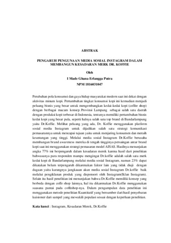 I Made Ghana, Erlangga Putra (2024) PENGARUH PENGUNAAN MEDIA SOSIAL INSTAGRAM DALAM MEMBANGUN KESADARAN MERK DR. KOFFIE. FAKULTAS ILMU SOSIAL DAN ILMU POLITIK, UNIVERSITAS LAMPUNG.