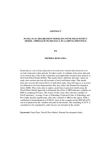 Data panel adalah sekumpulan data hasil analisis pada beberapa data cross-section yang diamati selama beberapa periode waktu runtun. Dengan kata lain, menggabungkan data time series dan data cross section. Salah satu pendekatan yang umum digunakan dalam analisis data panel adalah Fixed Effect Model (FEM). Model ini mengijinkan nilai intersep berbeda-beda untuk setiap unit cross- section tetapi masih mengasumsikan slope koefisien tetap. Model ini memperhitungkan efek tetap dari unit-unit individu, sehingga memungkinkan kita untuk memperhitungkan perbedaan dalam karakteristik tetap yang dapat memengaruhi Indeks Pembangunan Manusia (IPM). Penelitian ini bertujuan untuk menerapkan model regresi data panel dengan menggunakan pendekatan Fixed Effect Model untuk mengetahui pengaruh variabel-variabel indikator IPM terhadap IPM di Provinsi Lampung. Hasil dari penelitian ini menunjukkan bahwa variabel Angka Harapan Hidup, Rata-rata Lama Sekolah, Harapan Lama Sekolah, dan Pendapatan Perkapita secara signifikan memengaruhi variasi IPM di wilayah tersebut. Dengan nilai koefisien determinasi sebesar 0,99633, sebagian besar variasi IPM yaitu 99,633% dapat dijelaskan oleh variabel-variabel yang dimasukkan dalam model. Sisanya, sebesar 0,367%, dianggap dijelaskan oleh faktor-faktor lain yang tidak termasuk dalam model. Kata kunci : Data Panel, Fixed Effect Model, Indeks Pembangunan Manusia. Panel data is a set of data analyzed on several cross-section data observed over several consecutive time periods. In other words, it combines time series data and cross section data. One of the commonly used approaches in panel data analysis is the Fixed Effect Model (FEM). This model allows different intercept values for each cross-section unit but still assumes a fixed coefficient slope. This model takes into account the fixed effects of individual units, thus allowing us to account for differences in fixed characteristics that may affect the Human Development Index (HDI). This study aims to apply a panel data regression model using the Fixed Effect Model approach to determine the effect of HDI indicator variables on HDI in Lampung Province. The results of this study show that the variables of Life Expectancy, Average Years of Schooling, Expected Years of Schooling, and Per Capita Income significantly affect the variation of HDI in the region. With a coefficient of determination of 0.99633, most of the variation in the HDI 99.633% can be explained by the variables included in the model. The remaining 0.367% is considered to be explained by other factors not included in the model. Keywords: Panel Data, Fixed Effect Model, Human Development Index.