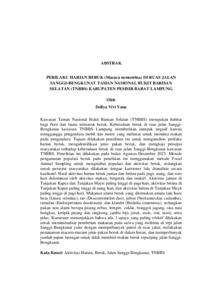Kawasan Taman Nasional Bukit Barisan Selatan (TNBBS) merupakan habitat bagi flora dan fauna termasuk beruk. Keberadaan beruk di ruas jalan Sanggi- Bengkunat kawasan TNBBS Lampung memberikan dampak negatif karena mengganggu pengendara mobil dan motor yang melintas untuk meminta makan pada pengendara. Tujuan dilakukan penelitian ini untuk menganalisis perilaku harian beruk, mengidentifikasi jenis pakan beruk, dan mengkaji persepsi masyarakat terhadap keberadaan beruk di ruas jalan Sanggi-Bengkunat kawasan TNBBS. Penelitian ini dilakukan pada bulan Agustus-Desember 2023. Metode pengamatan populasi beruk pada penelitian ini menggunakan metode Focal Animal Sampling untuk mengetahui populasi dan aktivitas beruk, sedangkan untuk persepsi masyarakat dilakukan dengan kuesioner lalu dianalisis secara kualitatif. Hasil aktivitas harian beruk jantan dan betina pada pagi, siang, dan sore hari didominasi oleh aktivitas makan, bergerak dan inaktif. Aktivitas jantan di Tanjakan Kapur dan Tanjakan Mayit paling tinggi di pagi hari, aktivitas betina di Tanjakan Kapur paling tinggi di siang hari, dan aktivitas betina di Tanjakan Mayit paling tinggi di pagi hari. Makanan alami beruk yang ditemukan antara lain huru beas (Litsea velutina), rao (Dracontomelon dao), jabon (Neolamarckia cadamba), temulan (Endospermum deadenum), dan klandri (Bridelia tomentosa), sedangkan pakan non alami berupa pisang rebus, lemper, coklat, bonggol jagung, sisa nasi bungkus, keripik pisang dan singkong, jambu biji, jeruk, sosis, roti, sawit, serta pilus. Kuesioner menunjukkan bahwa ada 3 upaya yang paling efektif dilakukan untuk meminimalisir pemberian makanan pada satwa yang melintas di tepi jalan Sanggi-Bengkunat yaitu dengan memperbanyak patrol di ruas jalan, melakukan penanaman macam-macam jenis pakan beruk di dalam hutan, dan memperbanyak jumlah papan larangan untuk tidak memberi makan beruk sepanjang jalan Sanggi- Bengkunat. Kata Kunci: Aktivitas Harian, Beruk, Jalan Sanggi-Bengkunat, TNBBS ABSTRACT DAILY BEHAVIOR OF MONKEYS (Macaca nemestrina) IN THE SANGGI-BENGKUNAT ROAD SECTION OF BUKIT BARISAN SELATAN NATIONAL PARK (TNBBS) WEST COAST DISTRICT OF LAMPUNG. Oleh Dellya Vivi Yana Bukit Barisan Selatan National Park (TNBBS) is a habitat for flora and fauna including monkeys. The presence of monkeys on the Sanggi-Bengkunat road in the TNBBS area of Lampung has a negative impact because it disturbs car and motorcycle drivers who pass by and ask the driver for food. This study aims to analyze the daily behavior of monkeys, identify the type of food that monkeys are fed, and examine the community's perception of the presence of monkeys on the Sanggi-Bengkunat road in the TNBBS area. This research was conducted in August-December 2023. The observation method of the monkey population in this study uses the Focal Animal Sampling method to determine the population and activities of the monkeys, while the community's perception is conducted using a questionnaire and then analyzed qualitatively. The results of the daily activities of male and female monkeys in the morning, noon, and evening are dominated by eating, moving, and being inactive. Male activity on Chalk Slope and Corpse Slope was highest in the morning, female activity on Chalk Slope was highest in the afternoon, and female activity on Corpse Slope was highest in the morning. Natural foods found for monkeys include huru beas (Litsea velutina), rao (Dracontomelon dao), jabon (Neolamarckia cadamba), temulan (Endospermum deadenum), dan klandri (Bridelia tomentosa), while non-natural foods include boiled bananas, lemper, chocolate, corn cobs, excess rice wrappers, banana and cassava chips, guava, oranges, sausages, bread, palm oil, and pilus. The survey showed that there are 3 most effective efforts to minimize the feeding of animals that cross the Sanggi-Bengkunat road, namely by increasing patrols on the road, planting various types of monkey food in the forest, and increasing the number of warning signs. to Don't feed the monkeys along the Sanggi-Bengkunat road. Keywords: Daily Activities, Beruk, Sanggi-Bengkunat Road, TNBBS