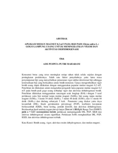 Ade Puspita , Putri Maharani (2024) APLIKASI MEDAN MAGNET 0,2 mT PADA BIJI PADI (Oryza sativa L.) GOGO LAMPUNG USANG UNTUK MENINGKATKAN VIGOR DAN AKTIVITAS DEHYDROGENASE. FAKULTAS MATEMATIKA DAN ILMU PENGETAHUAN ALAM, UNIVERSITAS LAMPUNG.