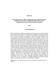Assami , Qathrinnada (2024) PENGARUH SOCIAL MEDIA MARKETING DAN TREND FEAR OF MISSING OUT (FOMO) TERHADAP IMPULSIVE BUYING (Studi Pada Konsumen Avoskin Di Bandar Lampung). FAKULTAS EKONOMI DAN BISNIS, UNIVERSITAS LAMPUNG .