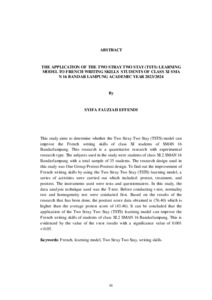Syifa , Fauziah Effendi (2024) PENERAPAN MODEL PEMBELAJARAN TWO STRAY TWO STAY (TSTS) TERHADAP KEMAMPUAN MENULIS BAHASA PRANCIS SISWA KELAS XI SMA N 16 BANDAR LAMPUNG TAHUN AJARAN 2023/2024. FAKULTAS KEGURUAN DAN ILMU PENDIDIKAN, UNIVERSITAS LAMPUNG.