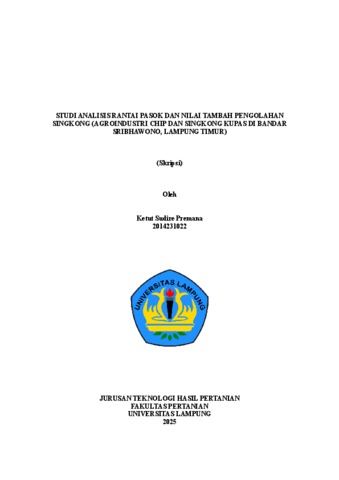 Ketut, Sudire Premana (2025) STUDI ANALISIS RANTAI PASOK DAN NILAI TAMBAH PENGOLAHAN SINGKONG (AGROINDUSTRI CHIP DAN SINGKONG KUPAS DI BANDAR SRIBHAWONO, LAMPUNG TIMUR). FAKULTAS PERTANIAN, UNIVERSITAS LAMPUNG .