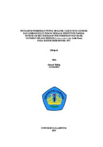 Ahmad, Shidiq (2025) PENGARUH PEMBERIAN PUPUK ORGANIK CAIR ECENG GONDOK DAN LIMBAH KULIT PISANG SEBAGAI SUBSTITUSI PARSIAL NUTRISI AB MIX TERHADAP PERTUMBUHAN DAN HASIL TANAMAN SELADA MERAH (Lactuca sativa var. Lollo Rosa) PADA SISTEM HIDROPONIK NFT. FAKULTAS PRTANIAN, UNIVERSITAS LAMPUNG.