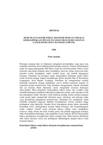 Pertanian tanaman hias di Indonesia mengalami pertumbuhan yang pesat dan memiliki kontribusi besar terhadap perekonomian nasional. Namun, keberlanjutan usaha ini sangat dipengaruhi oleh faktor sosial dan ekonomi petani. Faktor sosial ekonomi yang dikaji meliputi umur, pendidikan, motivasi, sikap, norma dan nilai, interaksi sosial, pendapatan usaha, kondisi pasar, dan jumlah tanggungan keluarga. Penelitian ini bertujuan untuk menganalisis hubungan antara faktor sosial ekonomi dengan tingkat kesejahteraan petani tanaman hias di Kecamatan Langkapura, Kota Bandar Lampung. Penelitian ini menggunakan metode deskriptif kuantitatif dengan pendekatan survei melalui kuesioner kepada 23 responden petani tanaman hias. Data dianalisis menggunakan statistik deskriptif dan uji korelasi Rank Spearman untuk mengetahui keeratan hubungan antarvariabel. Hasil penelitian menunjukkan bahwa hanya dua variable yang memiliki hubungan signifikan terhadap kesejahteraan petani, yaitu interaksi sosial dan pendapatan usaha. Interaksi sosial berperan penting karena melalui jaringan sosial petani dapat memperoleh informasi pasar, teknologi, dan peluang usaha yang mendukung peningkatan produktivitas. Sementara itu, pendapatan usaha memiliki pengaruh langsung terhadap kesejahteraan, karena semakin tinggi pendapatan yang diperoleh, semakin besar kemampuan petani dalam memenuhi kebutuhan dasar, meningkatkan kualitas hidup keluarga, dan mengembangkan usaha. Adapun variabel sosial ekonomi lainnya seperti, umur, pendidikan, motivasi, sikap, norma dan nilai, kondisi pasar, dan jumlah tanggungan keluarga tidak menunjukkan hubungan yang signifikan secara statistik. Hal ini menegaskan bahwa peningkatan kesejahteraan petani tanaman hias lebih banyak ditentukan oleh faktor interaksi sosial dan pendapatan dibandingkan dengan faktor sosial ekonomi lainnya. Kata kunci: faktor sosial, faktor ekonomi, kesejahteraan, tanaman hias, petani.