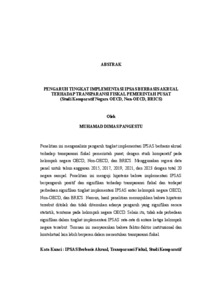 Penelitian ini menganalisis pengaruh tingkat implementasi IPSAS berbasis akrual terhadap transparansi fiskal pemerintah pusat, dengan studi komparatif pada kelompok negara OECD, Non-OECD, dan BRICS. Menggunakan regresi data panel untuk tahun anggaran 2015, 2017, 2019, 2021, dan 2023 dengan total 20 negara sampel. Penelitian ini menguji hipotesis bahwa implementasi IPSAS berpengaruh positif dan signifikan terhadap transparansi fiskal dan terdapat perbedaan signifikan tingkat implementasi IPSAS antar kelompok negara OECD, Non-OECD, dan BRICS. Namun, hasil penelitian menunjukkan bahwa hipotesis tersebut ditolak dan tidak ditemukan adanya pengaruh yang signifikan secara statistik, terutama pada kelompok negara OECD. Selain itu, tidak ada perbedaan signifikan dalam tingkat implementasi IPSAS rata-rata di antara ketiga kelompok negara tersebut. Temuan ini menyarankan bahwa faktor-faktor institusional dan kontekstual lain lebih berperan dalam menentukan transparansi fiskal. Kata Kunci : IPSAS Berbasis Akrual, Transparansi Fiskal, Studi Komparatif
