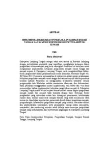 Fitria, Almaysuri (2025) IMPLEMENTASI KEBIJAKAN PENGELOLAAN SAMPAH RUMAH TANGGA DAN SAMPAH SEJENIS DI KABUPATEN LAMPUNG TENGAH. FAKULTAS ILMU SOSIAL DAN ILMU POLITIK , UNIVERSITAS LAMPUNG.