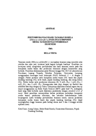 Sella, Virna (2025) PERTUMBUHAN DAN HASIL TANAMAN ROSELA (Hibiscus sabdariffa L.) PADA DUA KOMPOSISI MEDIA TANAM DENGAN PEMBERIAN EKOENZIM. FAKULTAS PERTANIAN, UNIVERSITAS LAMPUNG.