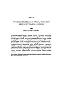 RESKY CYNTIA , MAWARNI (2025) PENGARUH LITERASI KEUANGAN TERHADAP PENGAMBILAN KEPUTUSAN INVESTASI PADA GENERASI Z. FAKULTAS EKONOMI DAN BISNIS, UNIVERSITAS LAMPUNG.