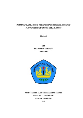 Frans, Aldi Gurning (2025) PERANCANGAN BACKEND WEBSITE ERP (ENTERPRISE RESOURCE PLANNING) PADA INDUSTRI KELAPA SAWIT. FAKULTAS TEKNIK, UNIVERSITAS LAMPUNG .