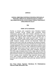 FEBBY, AFVIA SARUMAHA (2025) KINERJA OMBUDSMAN REPUBLIK INDONESIA PERWAKILAN PROVINSI LAMPUNG DALAM PENYELESAIAN LAPORAN MALADMINISTRASI PELAYANAN PUBLIK TERKAIT KERUSAKAN INFRASTRUKTUR JALAN. FAKULTAS ILMU SOSIAL DAN ILMU POLITIK , UNIVERSITAS LAMPUNG.