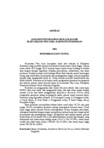 Kecamatan Way Lima merupakan salah satu wilayah di Kabupaten Pesawaran yang memiliki potensi kerawanan bencana banjir cukup tinggi. Selama kurun waktu 2023 hingga 2024, bencana banjir terjadi secara berulang di sebelas desa dengan dampak signifikan terhadap permukiman, infrastruktur, dan lahan pertanian. Kondisi ini dipicu oleh berbagai faktor fisik wilayah, seperti kemiringan lereng yang relatif datar, penyempitan dan pendangkalan sungai, serta penumpukan sampah yang menghambat aliran air. Setiap wilayah memiliki karakterisktik dan faktor berbeda. Penelitian ini bertujuan untuk menganalisis parameter berpengaruh dan sebaran potensi rawan bencana banjir di Kecamatan Way Lima, Kabupaten Pesawaran berbasis Sistem Informasi Geografis. Penelitian ini menggunakan data Digital Elevation Model, data curah hujan BMKG, data jenis tanah, data penggunaan lahan, dan data aliran sungai dengan metode overlay dan bobot menggunakan Analythical Hierarchy Process untuk mengetahui parameter paling berpengaruh dalam potensi rawan bencana banjir. Parameter yang digunakan meliputi: a) Kemiringan Lereng, b) Ketinggian Lahan, c) Curah Hujan, d) Jenis Tanah, e) Penggunaan Lahan, f) Jarak Sungai, dan g) Kerapatan Sungai. Hasil penelitian menunjukkan bahwa bobot curah hujan 29,52% dan jarak sungai 20,45% merupakan parameter paling berpengaruh bencana banjir. Curah hujan tinggi dalam periode tertentu meningkatkan volume limpasan permukaan, sedangkan kedekatan dengan sungai memperbesar potensi banjir dari luapan akibat penyempitan dan pendangkalan sungai. Berdasarkan hasil analisis spasial, potensi rawan banjir di Kecamatan Way Lima diklasifikasikan menjadi tiga kategori, yang didominasi oleh rawan banjir sedang seluas 3.014,525 Ha (47,94%), rawan banjir rendah atau tidak banjir seluas 2.983,881 Ha (47,46%), dan rawan banjir tinggi seluas 289,209 Ha (4,60%). Kata Kunci: Banjir, Kerawanan, Analythical Hierarchy Process, Sistem Informasi Geografis Way Lima District is one of the regions in Pesawaran Regency with a high level of flood disaster vulnerability. From 2023 to 2024, recurrent floods have impacted eleven villages, causing significant damage to settlements, infrastructure, and agricultural land. This condition is triggered by various physical factors, including relatively flat slopes, river narrowing and sedimentation, and the accumulation of waste that obstructs water flow. Each area has different characteristics and contributing factors. This study aims to analyze the influential parameters and the spatial distribution of flood vulnerability potential in Way Lima District using Geographic Information System based analysis. This study uses Digital Elevation Model data, BMKG rainfall data, soil type data, land use data, and river flow data with overlay and weighting methods using Analythical Hierarchy Process to determine the most influential parameters in the potential for flood disaster vulnerability. The parameters used include: a) Slope, b) Elevation, c) Rainfall, d) Soil Type, e) Land Use, f) River Distance, and g) River Density. The results of the study indicate that rainfall weighting 29.52% and river distance 20.45% are the most influential parameters for flood disasters. High rainfall in a certain period increases the volume of surface runoff, while proximity to the river increases the potential of flooding from river overflows due to narrowing and shallowing of the river. Based on the results of the spatial analysis, the level of potential flood vulnerability in Way Lima District is classified into three categories, which is dominated by moderate vulnerability covering 3,014.525 Ha (47.94%), low vulnerability or no flooding covering 2,983.881 Ha (47.46%), and high vulnerability covering 289.209 Ha (4.60%). Keywords: Flood, Vulnerability, Analythical Hierarchy Process, Geographic Information System