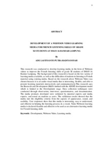 Ade Lastiyanto, Putra Radiyansyah (2025) PENGEMBANGAN MEDIA PEMBELAJARAN VIDEO WEBTOON UNTUK KETERAMPILAN MENYIMAK BAHASA PRANCIS SISWA KELAS XI SMAN 16 BANDAR LAMPUNG. FAKULTAS KEGURUAN DAN ILMU PENDIDIKAN, UNIVERSITAS LAMPUNG.