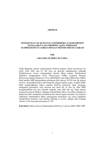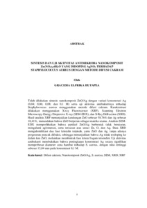 Telah dilakukan sintesis nanokomposit ZnO/Ag dengan variasi konsentrasi Ag (0,04; 0,06; 0,08; dan 0,1 M) serta uji aktivitas antibakterinya terhadap Staphylococcus aureus menggunakan metode difusi cakram. Karakterisasi dilakukan menggunakan X-ray Fluorescence (XRF), Scanning Electron Microscopy-Energy Dispersive X-ray (SEM-EDX), dan X-Ray Diffraction (XRD). Hasil analisis XRF menunjukkan kandungan ZnO sebesar 58,76% dan Ag sebesar 10,41%, menandakan bahwa ZnO berperan sebagai matriks utama. Analisis SEMEDX memperlihatkan bahwa partikel ZnO/Ag berbentuk tidak beraturan, mengalami aglomerasi, serta tersusun atas unsur Zn, O, dan Ag. Data XRD mengidentifikasi dua fase kristalin terpisah, yaitu ZnO dan Ag, tanpa adanya pergeseran puncak difraksi, sehingga menunjukkan bahwa Ag tidak terdoping ke dalam kisi ZnO, melainkan membentuk fase kristal logam tersendiri. Uji aktivitas antibakteri membuktikan bahwa peningkatan konsentrasi Ag secara signifikan memperbesar diameter zona hambat terhadap S. aureus, dengan nilai tertinggi sebesar 13,04 mm pada konsentrasi 0,1 M. Kata kunci: Difusi cakram, Nanokomposit ZnO/Ag, S. aureus, SEM, XRD, XRF