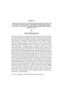 TIARA, NOER APRILIANI (2025) ANALISIS HARGA POKOK PRODUKSI DAN PENJUALAN SERTA FAKTOR-FAKTOR YANG MEMENGARUHI KONSUMEN DALAM PEMBELIAN KERIPIK KULIT PATIN (STUDI KASUS AGROINDUSTRI PATIN JUARA KOTA BANDAR LAMPUNG). FAKULTAS PERTANIAN, UNIVERSITAS LAMPUNG.