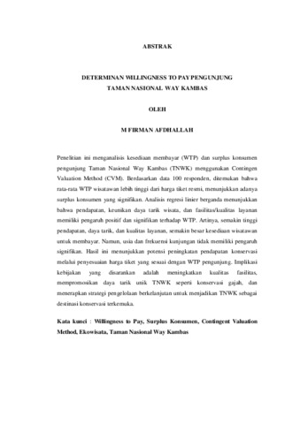 M Firman, Afdhallah (2025) DETERMINAN WILLINGNESS TO PAY PENGUNJUNG TAMAN NASIONAL WAY KAMBAS. FAKULTAS EKONOMI DAN BISNIS, UNIVERSITAS LAMPUNG.