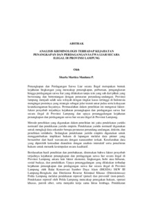Sharla Martiza , Maulana P. (2025) ANALISIS KRIMINOLOGIS TERHADAP KEJAHATAN PENANGKAPAN DAN PERDAGANGAN SATWA LIAR SECARA ILEGAL DI PROVINSI LAMPUNG. FAKULTAS HUKUM, UNIVERSITAS LAMPUNG.