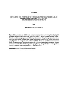 Tujuan dalam penelitian ini adalah untuk mengetahui pengaruh circuit training terhadap tingkat kebugaran jasmani siswa ektrakurikuler futsal SMA Negeri 1 Tanjung Bintang Lampung Selatan. Metode penelitian yang digunakan adalah ekperimen semu. Sampel yang digunakan dalam penelitian ini berjumlah 40 orang siswa dengan menggunkan teknik Ordinal Pairing. Instrument yang digunakan tes kebugaran siswa Indonesia (TKSI). Hasil dari penelitian ini menunjukan bahwa ada pengaruh yang signifikan latihan circuit training terhadap tingkat kebugaran jasmani siswa ektrakurikuler futsal SMA Negeri 1 Tanjung Bintang. Dengan hasil uji t taraf signifikan 5% (0,05) diperoleh nilai t hitung sebesar 25 > nilai t tabel = 1,725. Kata Kunci: Circuit Training, Kebugaran Jasmani The purpose of this study was to determine the effect of circuit training on the level of physical fitness of students of extracurricular futsal at SMA Negeri 1 Tanjung Bintang, South Lampung. The research method used was a quasi-experimental study. The sample used in this study was 40 students using the Ordinal Pairing technique. The instrument used was the Indonesian student fitness test (TKSI). The results of this study indicate that there is a significant effect of circuit training on the level of physical fitness of students of extracurricular futsal at SMA Negeri 1 Tanjung Bintang. With the results of the t-test at a significant level of 5% (0.05), the calculated t value was 25> t-table value = 1.725. Keywords: Circuit Training, Physical Fitness