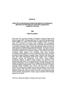 Pada tahun 2021 prevalensi stunting di Kabupaten Lampung Tengah masih berada di angka 20,8%. Meskipun pada tahun 2022 prevalensi stunting berhasil ditekan hingga 8,7%, angka tersebut kembali meningkat menjadi 16,7% pada tahun 2023. Penelitian ini bertujuan untuk mengetahui serta menganalisis efektivitas program intervensi serentak dalam menurunkan prevalensi stunting di Kabupaten Lampung Tengah. Metode yang digunakan dalam penelitian ini adalah penelitian kualitatif dengan pendekatan deskriptif. Penelitian ini bertitik tolak pada konsep pengukuran efektivitas pada 5 indikator yang dapat mengukur keberhasilan program yaitu pemahaman program, tepat sasaran, tepat waktu, tercapainya tujuan program, serta perubahan nyata. Hasil penelitian menunjukkan bahwa program intervensi serentak tidak efektif dalam percepatan penurunan stunting Kabupaten Lampung Tengah. Indikator tepat sasaran dan tepat waktu dapat dikategorikan efektif karena program telah menjangkau kelompok prioritas dan dilaksanakan sesuai jadwal. Namun indikator pemahaman program, tercapainya tujuan program, dan perubahan nyata dikategorikan tidak efektif. Hal ini disebabkan oleh beberapa faktor, antara lain program dilaksanakan secara mendadak sehingga persiapan pelaksanaan dan sosialisasi kegiatan kurang maksimal. Selain itu, beberapa wilayah di Kabupaten Lampung Tengah terkendala signal internet saat input data ke aplikasi Elektronik Pencatatan dan Pelaporan Gizi Berbasis Masyarakat, serta beberapa sasaran program tidak dapat hadir akibatnya program tertunda karena harus dilakukan jemput bola (sweping). Selain itu outcome utama berupa penurunan jumlah prevalensi stunting belum tercapai, yang menunjukkan bahwa dampak program belum efektif. Kata Kunci: Efektivitas Program, Stunting, Intervensi Serentak.