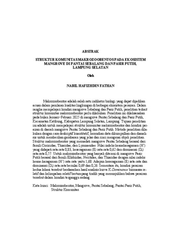 NABIL HAFIZHDIN , FATHAN (2025) STRUKTUR KOMUNITAS MAKROZOOBENTOS PADA EKOSISTEM MANGROVE DI PANTAI SEBALANG DAN PASIR PUTIH, LAMPUNG SELATAN. FAKULTAS PERTANIAN, UNIVERSITAS LAMPUNG.