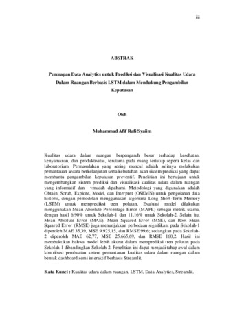 Kualitas udara dalam ruangan berpengaruh besar terhadap kesehatan, kenyamanan, dan produktivitas, terutama pada ruang tertutup seperti kelas dan laboratorium. Permasalahan yang sering muncul adalah sulitnya melakukan pemantauan secara berkelanjutan serta kebutuhan akan sistem prediksi yang dapat membantu pengambilan keputusan preventif. Penelitian ini bertujuan untuk mengembangkan sistem prediksi dan visualisasi kualitas udara dalam ruangan yang informatif dan vmudah dipahami. Metodologi yang digunakan adalah Obtain, Scrub, Explore, Model, dan Interpret (OSEMN) untuk pengolahan data historis, dengan pemodelan menggunakan algoritma Long Short-Term Memory (LSTM) untuk memprediksi tren polutan. Evaluasi model dilakukan menggunakan Mean Absolute Percentage Error (MAPE) sebagai metrik utama, dengan hasil 6,90% untuk Sekolah-1 dan 11,16% untuk Sekolah-2. Selain itu, Mean Absolute Error (MAE), Mean Squared Error (MSE), dan Root Mean Squared Error (RMSE) juga menunjukkan perbedaan signifikan: pada Sekolah-1 diperoleh MAE 35,39, MSE 9.925,15, dan RMSE 99,6; sedangkan pada Sekolah 2 diperoleh MAE 62,77, MSE 25.665,69, dan RMSE 160,2. Hasil ini membuktikan bahwa model lebih akurat dalam memprediksi tren polutan pada Sekolah-1 dibandingkan Sekolah-2. Penelitian ini dapat menjadi tahap awal dalam kontribusi pembuatan sistem pemantauan kualitas udara dalam ruangan dalam bentuk dashboard semi interaktif berbasis Streamlit.