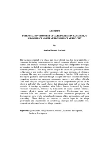 Annisa , Kumala Ardianti (2025) POTENSI PENGEMBANGAN AGROWISATA DI KELURAHAN KARANGREJO KECAMATAN METRO UTARA KOTA METRO. FAKULTAS PERTANIAN , UNIVERSITAS LAMPUNG.