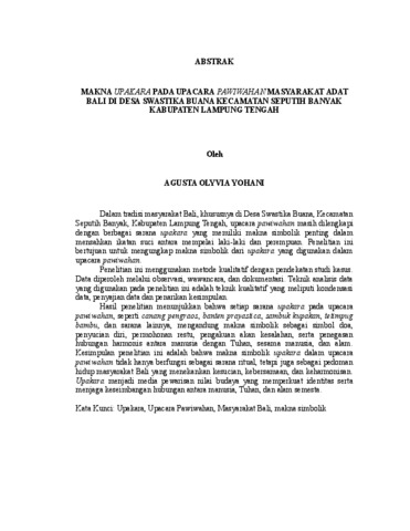 AGUSTA , OLYVIA YOHANI (2025) MAKNA UPAKARA PADA UPACARA PAWIWAHAN MASYARAKAT ADAT BALI DI DESA SWASTIKA BUANA KECAMATAN SEPUTIH BANYAK KABUPATEN LAMPUNG TENGAH. FAKULTAS KEGURUAN DAN ILMU PENDIDIKAN, UNIVERSITAS LAMPUNG.