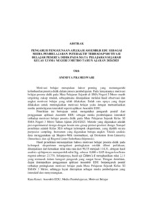 ANINDYA , PRAMESWARI (2025) PENGARUH PENGGUNAAN APLIKASI ASSEMBLR EDU SEBAGAI MEDIA PEMBELAJARAN INTERAKTIF TERHADAP MOTIVASI BELAJAR PESERTA DIDIK PADA MATA PELAJARAN SEJARAH KELAS XI SMA NEGERI 3 METRO TAHUN AJARAN 2024/2025. FAKULTAS KEGURUAN DAN ILMU PENDIDIKAN, UNIVERSITAS LAMPUNG.