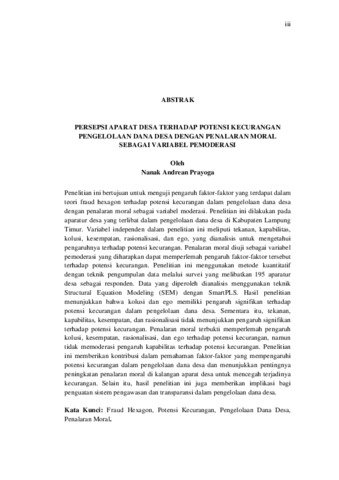 Nanak , Andrean Prayoga (2025) PERSEPSI APARAT DESA TERHADAP POTENSI KECURANGAN PENGELOLAAN DANA DESA DENGAN PENALARAN MORAL SEBAGAI VARIABEL PEMODERASI. FAKULTAS EKONOMI DAN BISNIS, UNIVERSITAS LAMPUNG.