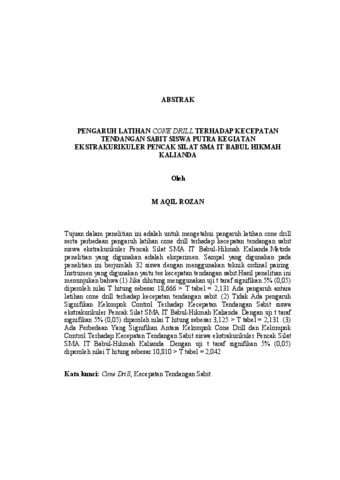 PENGARUH LATIHAN CONE DRILL TERHADAP KECEPATAN TENDANGAN SABIT SISWA PUTRA KEGIATAN EKSTRAKURIKULER PENCAK SILAT SMA IT BABUL HIKMAH KALIANDA