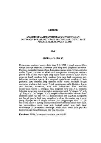 ADELIA, ANANDA SP (2025) ANALISIS KEMAMPUAN MEMBACA MENGGUNAKAN INSTRUMEN EGRA (EARLY GRADE READING ASSESSMENT) BAGI PESERTA DIDIK SEKOLAH DASAR. FAKULTAS KEGURUAN DAN ILMU PENDIDIKAN, UNIVERSITAS LAMPUNG.
