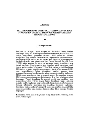 Aris Setya, Novanto (2025) ANALISIS DETERMINAN INDEKS KUALITAS LINGKUNGAN HIDUP 34 PROVINSI DI INDONESIA TAHUN 2020-2022 MENGGUNAKAN PENDEKATAN EKONOMI. FAKULTAS EKONOMI DAN BISNIS, UNIVERSITAS LAMPUNG.
