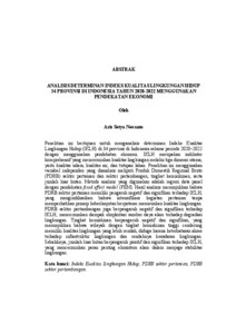 Penelitian ini bertujuan untuk menganalisis determinan Indeks Kualitas Lingkungan Hidup (IKLH) di 34 provinsi di Indonesia selama periode 2020–2022 dengan menggunakan pendekatan ekonomi. IKLH merupakan indikator komprehensif yang mencerminkan kualitas lingkungan melalui tiga dimensi utama, yaitu kualitas udara, kualitas air, dan tutupan lahan. Penelitian ini menggunakan variabel independen yang dianalisis meliputi Produk Domestik Regional Bruto (PDRB) sektor pertanian dan sektor pertambangan, tingkat kemisikinan, serta jumlah luas hutan. Metode analisis yang digunakan adalah regresi data panel dengan pendekatan fixed effect model (FEM). Hasil analisis menunjukkan bahwa PDRB sektor pertanian memiliki pengaruh negatif dan signifikan terhadap IKLH, yang mengindikasikan bahwa intensifikasi kegiatan pertanian tanpa memperhatikan prinsip keberlanjutan berpotensi menurunkan kualitas lingkungan. PDRB sektor pertambangan juga berpengaruh negatif dan signifikan terhadap IKLH, mencerminkan dampak eksploitasi sumber daya alam terhadap degradasi lingkungan. Tingkat kemiskinan berpengaruh negatif dan signifikan, yang menunjukkan bahwa wilayah dengan tingkat kemiskinan tinggi cenderung memiliki kualitas lingkungan yang lebih rendah, diduga karena keterbatasan akses terhadap infrastruktur lingkungan dan rendahnya kesadaran lingkungan. Sebaliknya, jumlah luas hutan berpengaruh positif dan signifikan terhadap IKLH, yang mencerminkan peran penting ekosistem alam dalam menjaga stabilitas lingkungan. Kata kunci: Indeks Kualitas Lingkungan Hidup, PDRB sektor pertanian, PDRB sektor pertambangan.